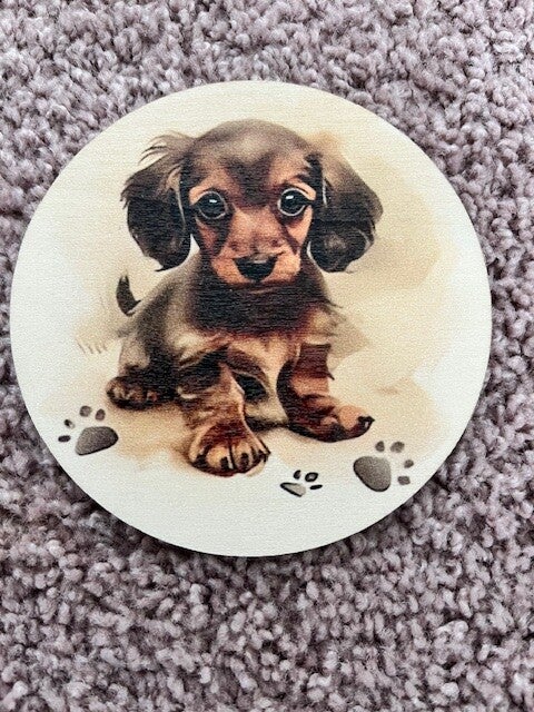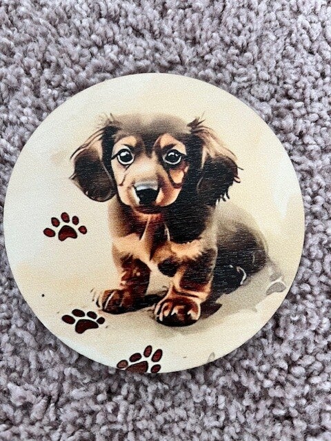 🐾 6 unieke teckelprints – elke onderzetter z’n eigen hondje